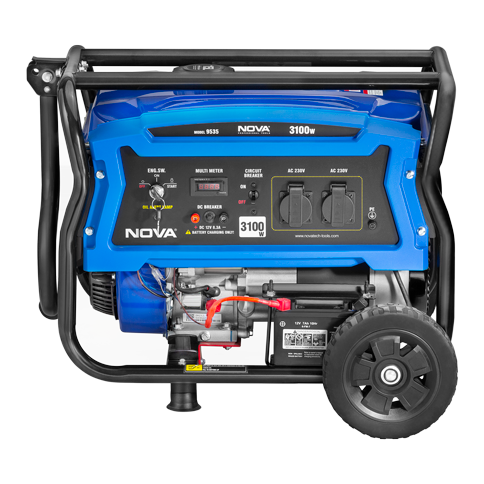 موتور برق بنزینی 3100 وات مدل 9535 ،یکی از مدل های قدرتمند و بی رقیب در مجموعه موتور برق های شرکت نووا می باشد که توانسته جایگاه ویژه ای در مصارف خانگی،کشاورزی،صنعتی،کارگاه ها و کارخانجات پیدا کند و از قطع عملیات و ایجاد مشکل حین قطعی برق جلوگیری نماید.این محصول به صورت کم حجم با ابعاد جمع و جور و طبق استاندارد های روز دنیا طراحی شده است تا کاربران هنگام جابجایی و حمل ژنراتور با مشکل مواجه نشوند.